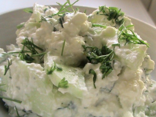 Состав: 100 г жирного творога, 1,25 стакана молока, по 25 г мелко нарезанных лука-порея, петрушки, чеснока, 3 ст. ложки уксуса или 2 ст. ложки лимонного сока, соль и горчица по вкусу.